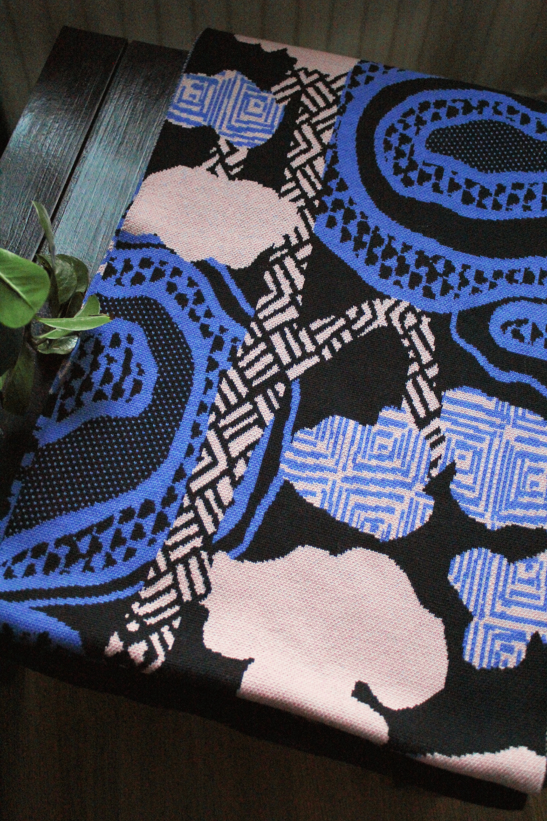 Traditional kogin zashi motifs are usually very precise and geometric, but I chose to draw my knitting motifs freehand, breaking the symmetry to create surfaces that feel more varied, organic, soft, and intriguing.