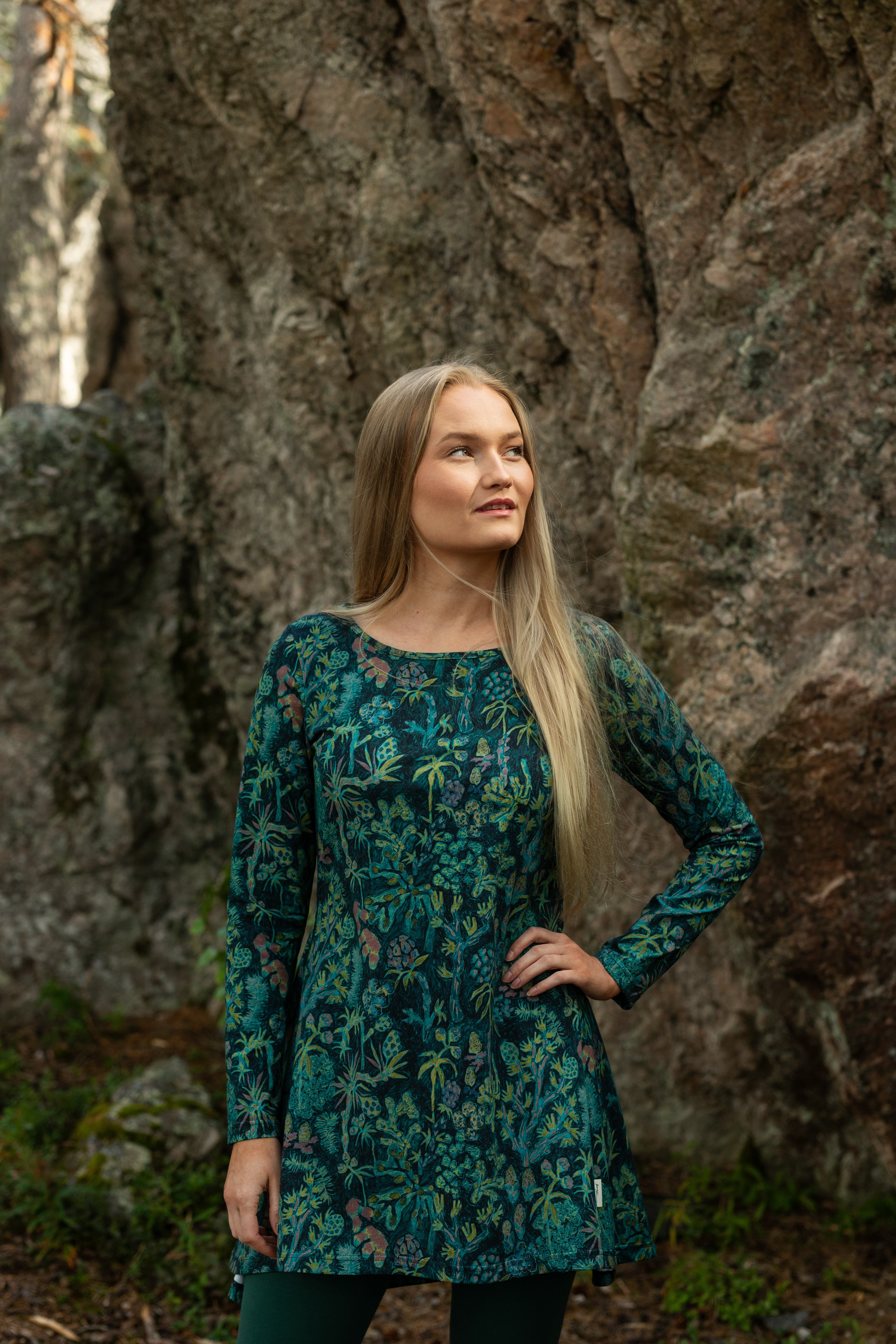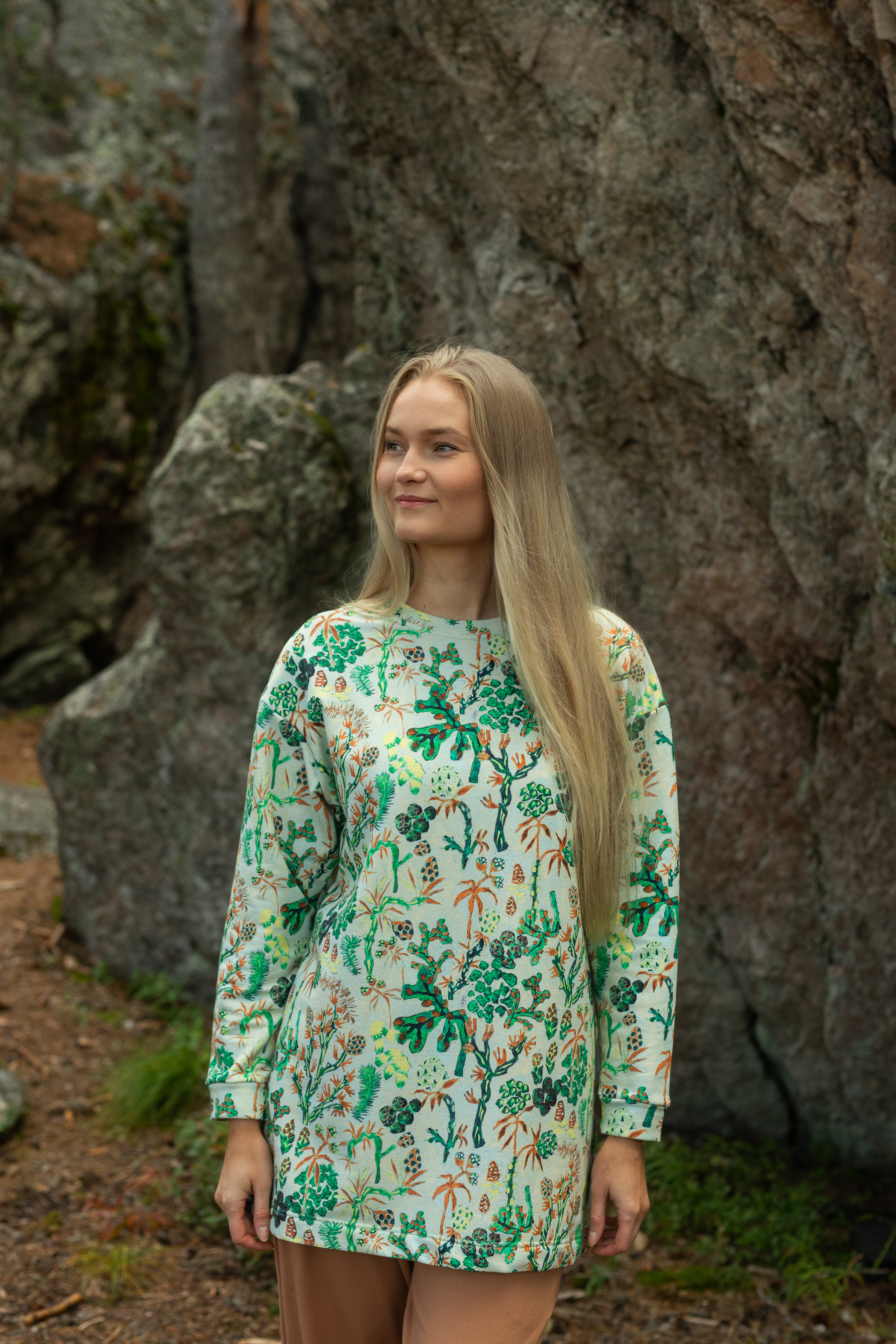 My collection consisted of four original prints, two of which – Löytöretki (Expedition) and Sarastus (Dawn) – were selected for PaaPii’s final collection. The collaboration was launched on October 3, 2025, featuring three dresses, three blouses and four pairs of trousers. The prints were also added to PaaPii’s fabric shop.