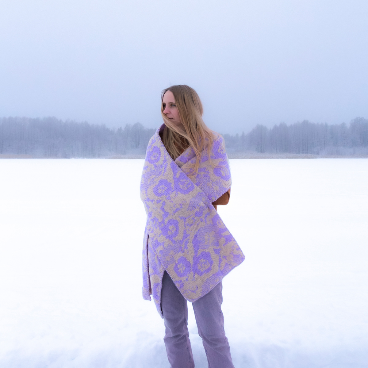 Ruusutarha, "rose garden", is a scarf hand-knitted in double-knit technique.